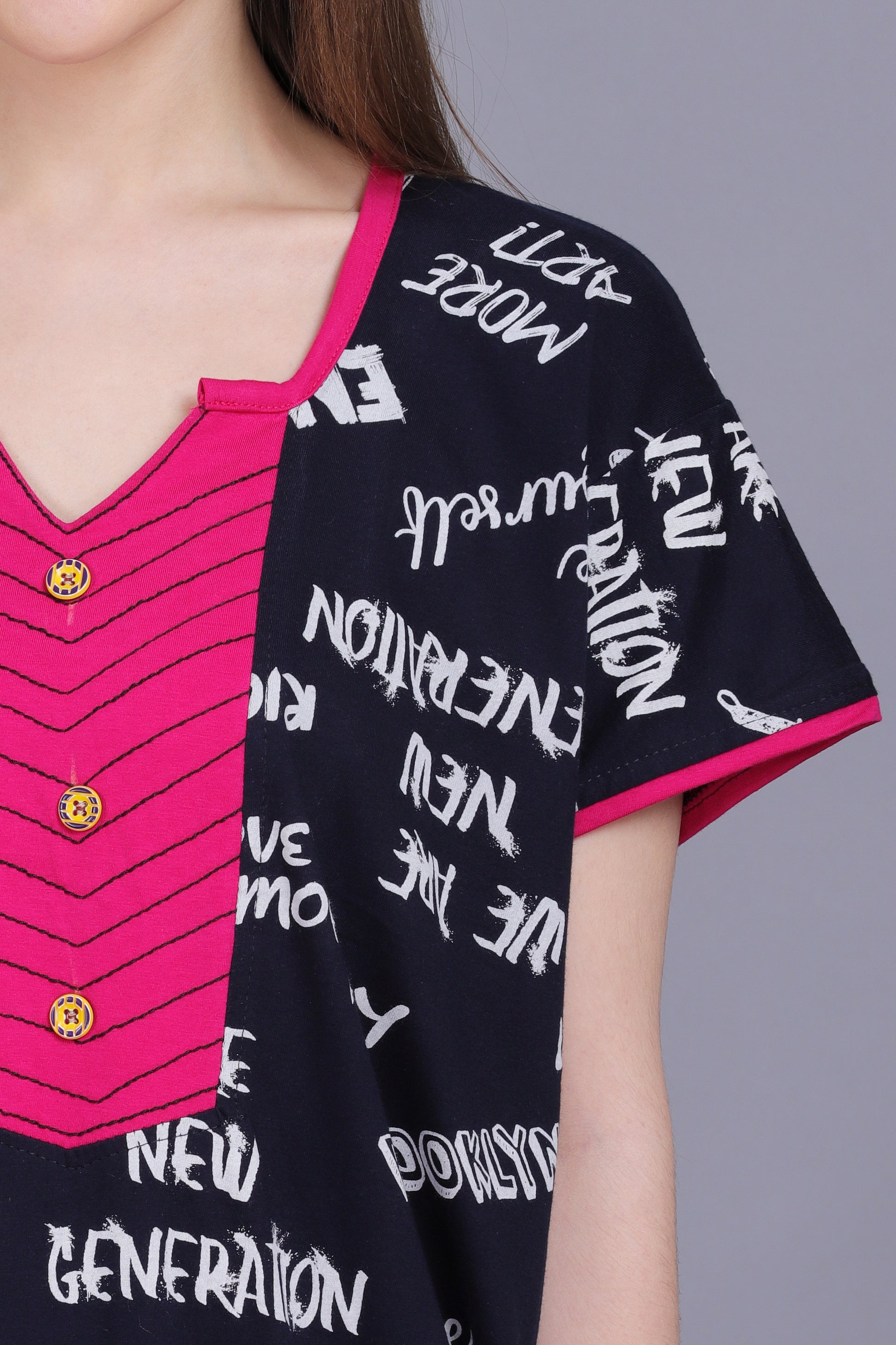 Camisón de algodón para mujer con estampado tipográfico Sinker para todas las estaciones
