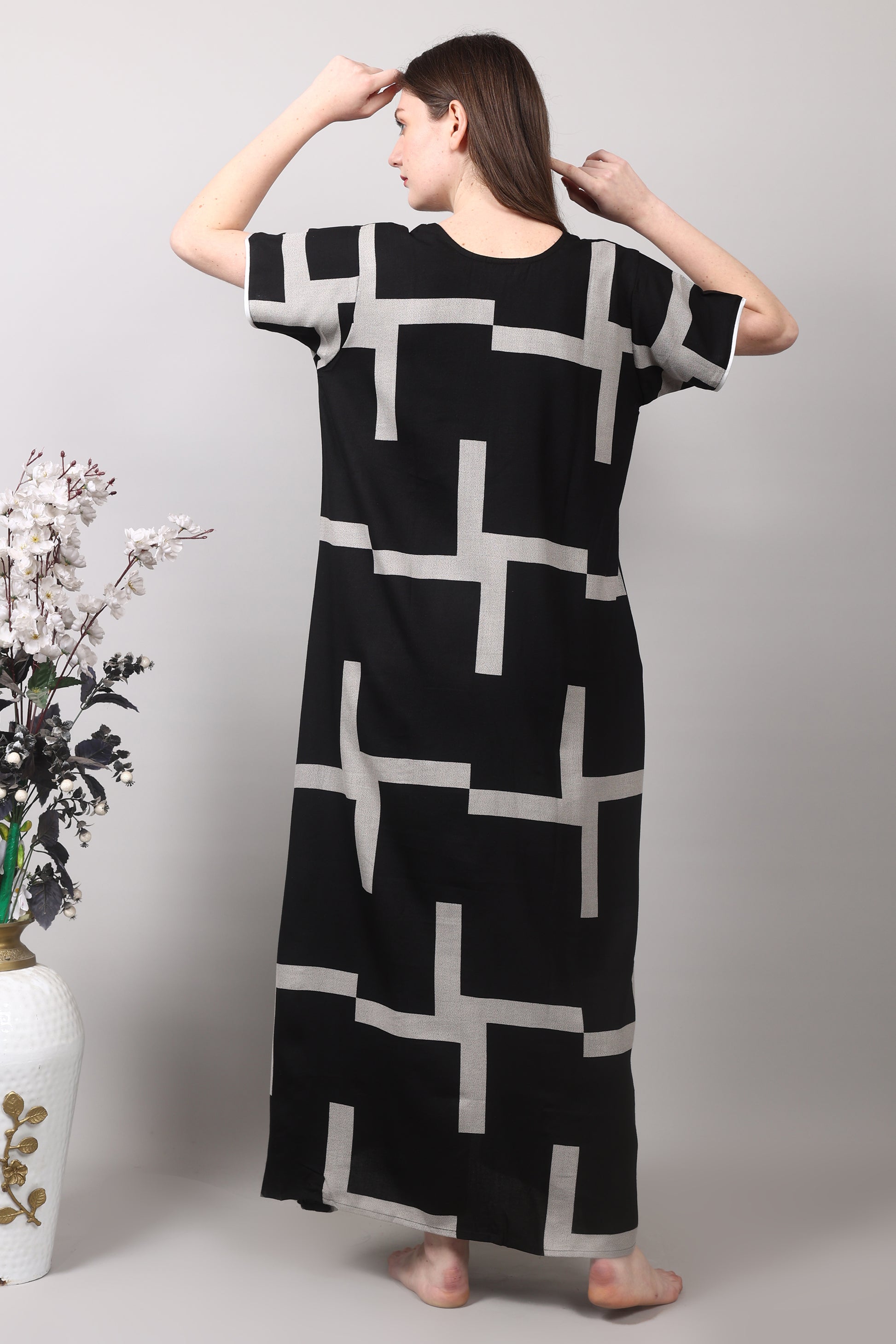 Every product's design and style are being taken care of that lets you wear this nighty in the daytime to carry out your routine work with no fear of transparency and in the nighttime for a peaceful happy sleep. This all-day-wearable nighty comes with a pocket that helps you carry your mobile with you wherever you go. Viscose Blend material "Alpine" Fabric Night Gown (Pack of 1 unit), this beautiful piece of nightgown/nighty/maxi will make you feel relaxed and comfortable all 24 hours a day. It is in abstract print having short sleeves, simple yet elegant neck design that adds more charm to your beauty.