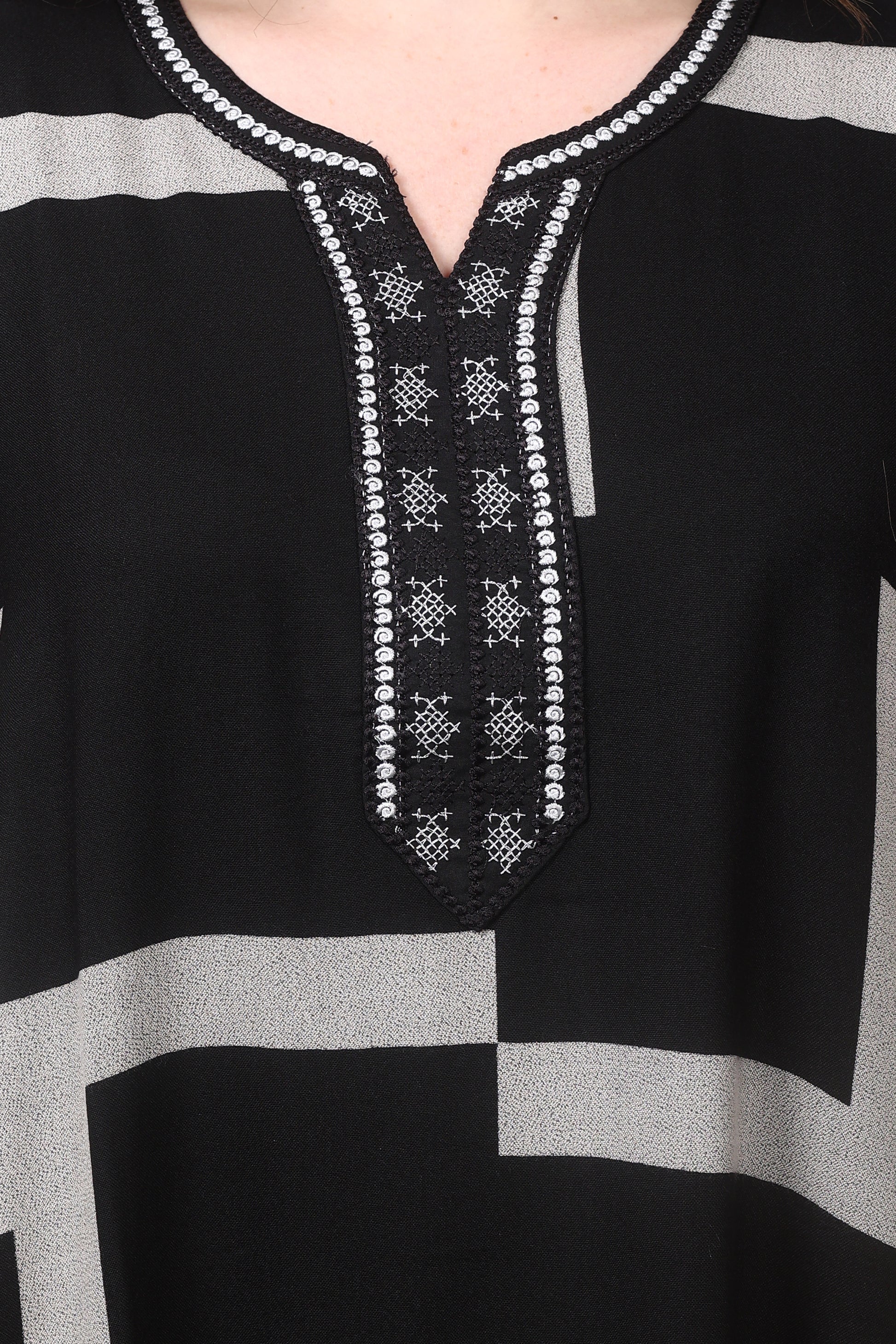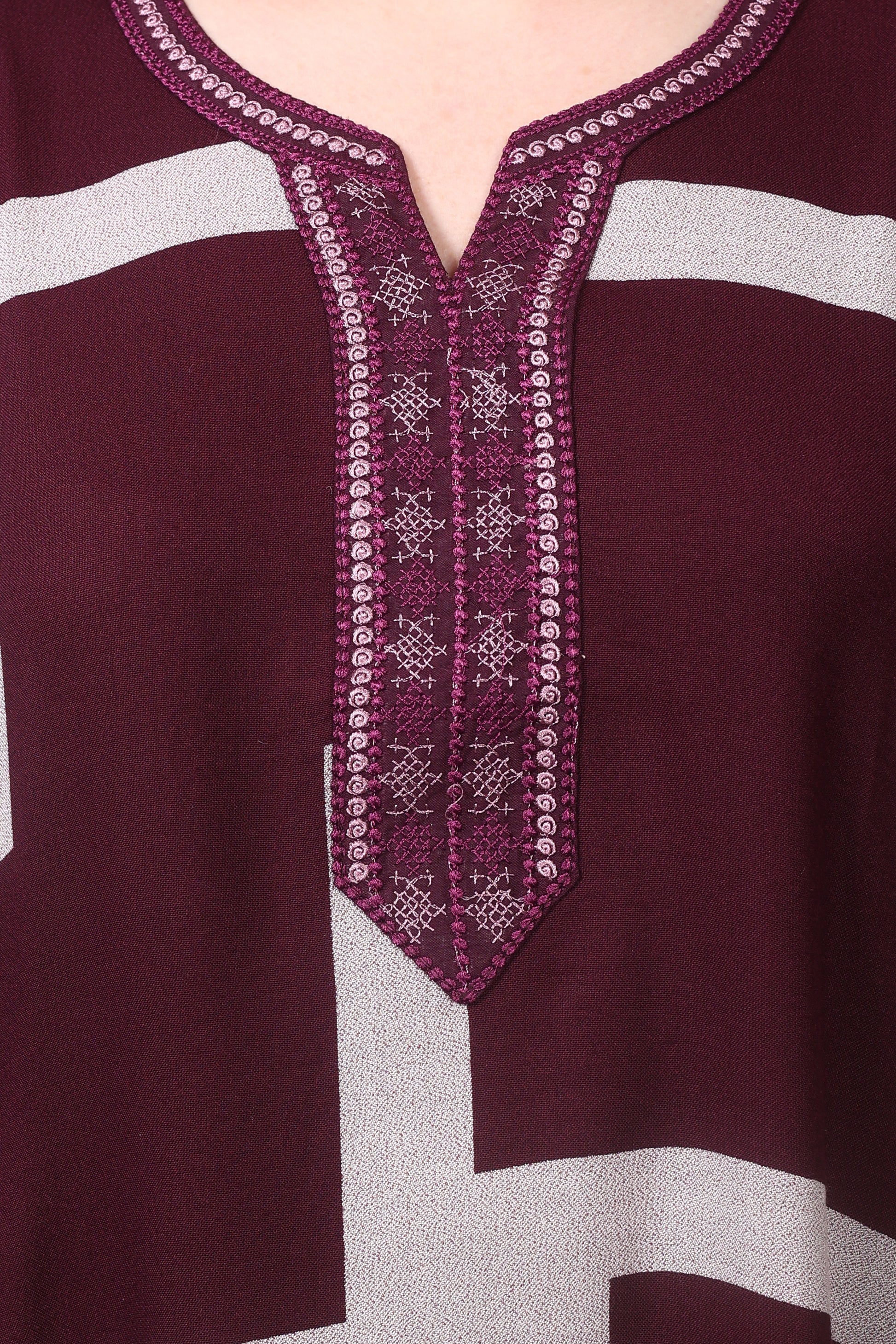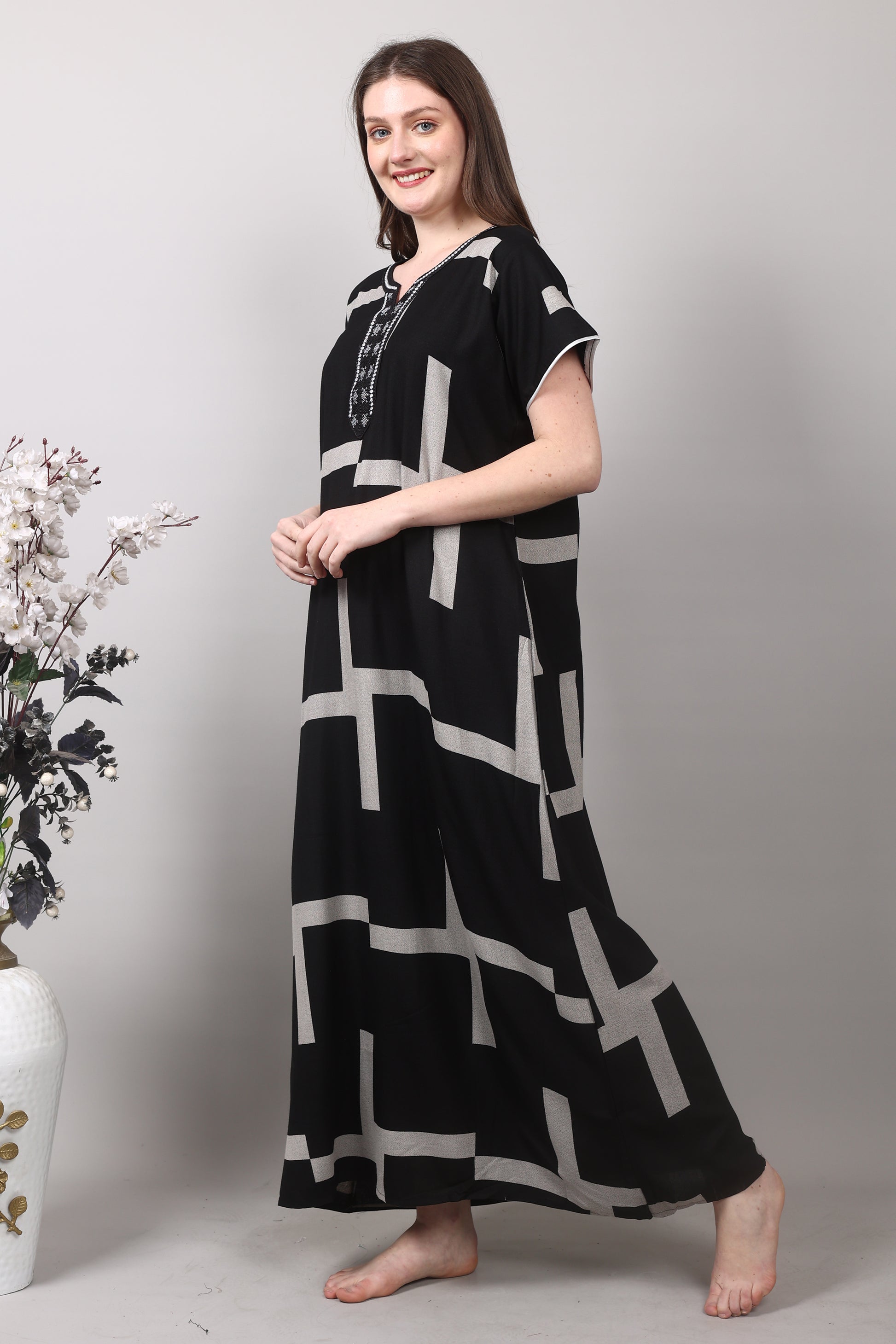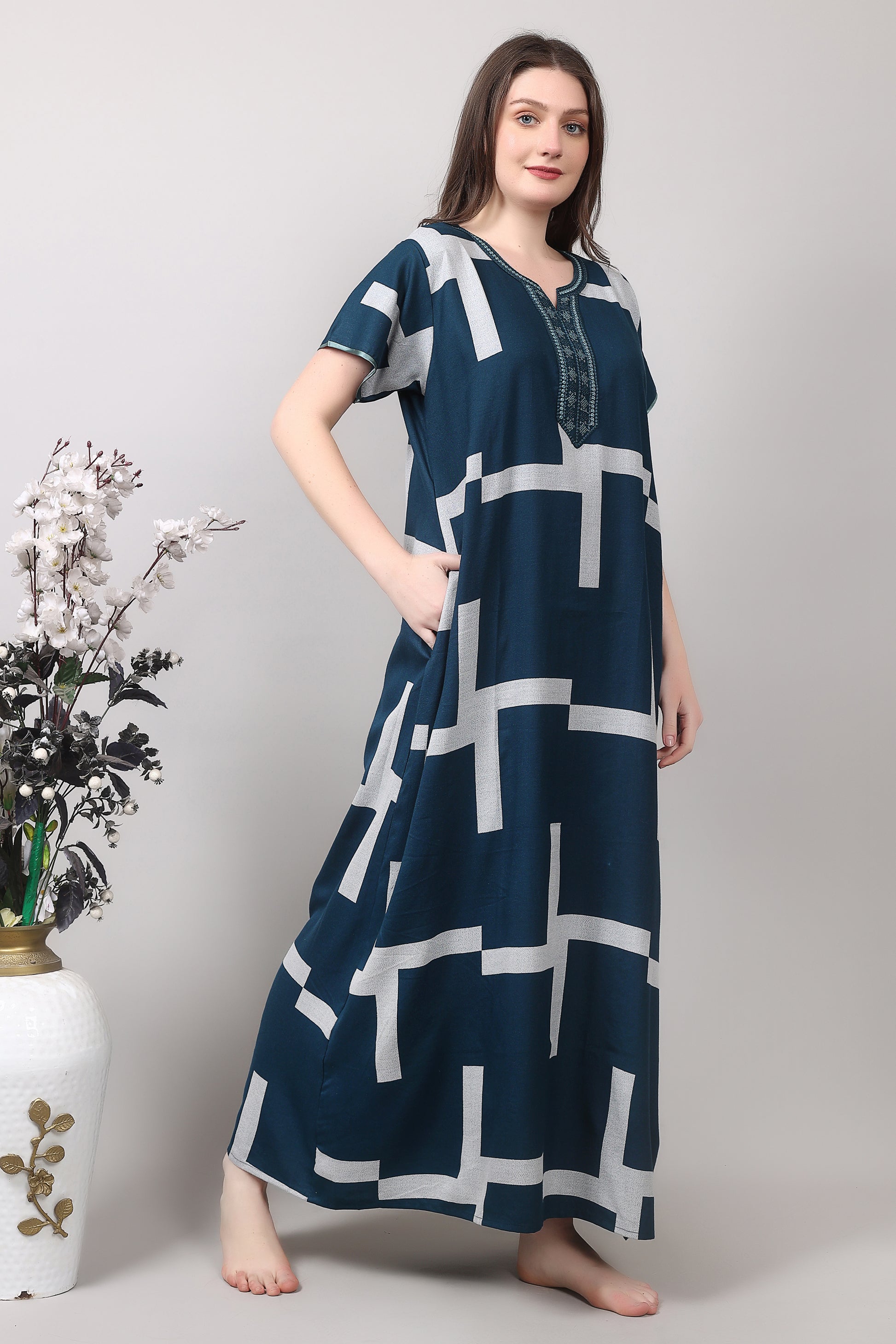 Girls And Moms Women’s Nightgown | Wine Color with Abstract Geometric Print | Embroidered Neck Sleepwear | Premium Lounge Gown